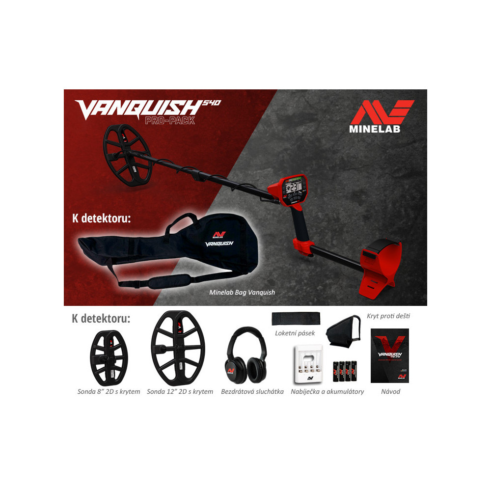 VANQUISH 540 je špičkový detektor určený pro všechny, kteří hledají nejvyšší výkon při doslova extrémně jednoduchém nastavení přístroje. Detektor je vybaven technologií Multi IQ a oproti verzi 340 a 440 je osazen také větší cívkou 30x25 cm 2D. Vanquish 540 zvládne každý uživatel a detektor si poradí ve všech půdních podmínkách a tak se všemi typy cílů. Detektor je také vybaven bezdrátovou technologíí Bluetooth, aptx™ Low Latency pro použití bezdrátových sluchátek. Opravdu zajímavé je také červené podsvícení, které je velmi příjemné.